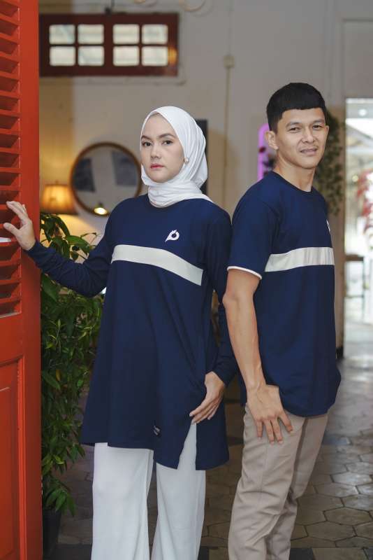 Kaos Kurta Dewasa Pendek Premium 100% Katun Cotton Combed 20s Muslim Koko Navy Cream Peweka Distro